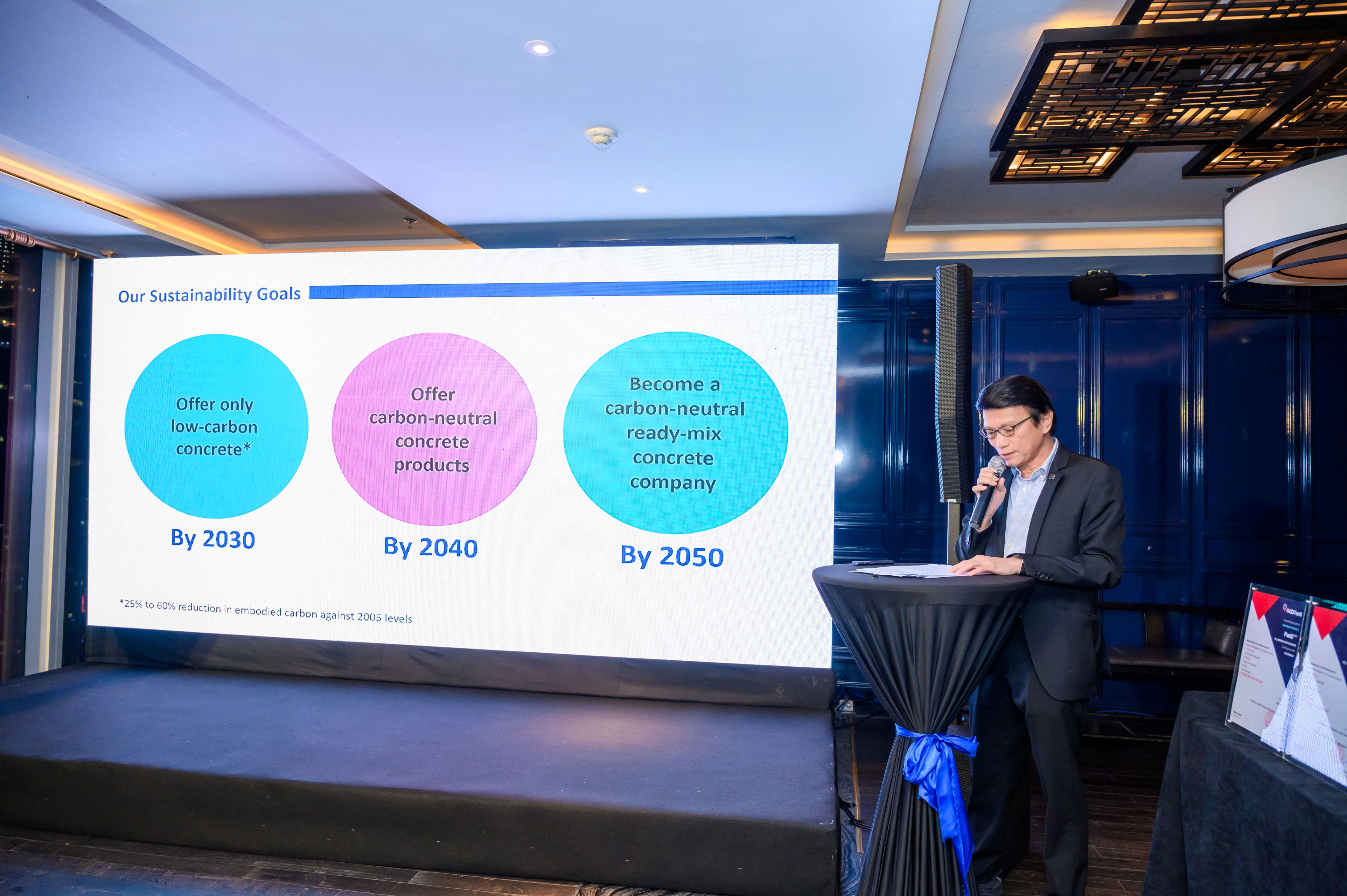 Trong buổi lễ, ông Ken Loh đã chia sẻ về sứ mệnh của Pan-United là “Khử carbon thế giới bằng bê tông”, đồng thời nêu bật những cột mốc đã đạt được cho đến nay trong hành trình phát triển bền vững của tập đoàn. Ông cho biết Pan-United hiện là nhà sản xuất bê tông khoáng hóa carbon hàng đầu thế giới, đạt được mức tiết kiệm CO2 cao nhất trên mỗi nhà máy.